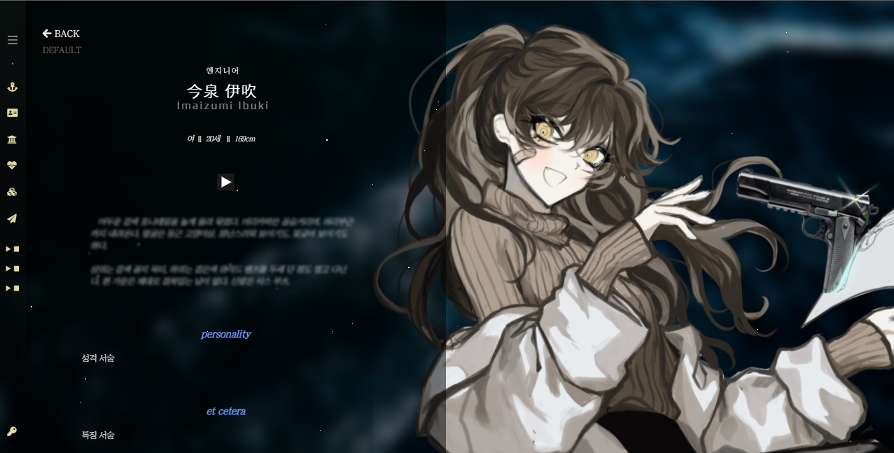 그 외 주의할 점.. 얼굴이 전신의 왼쪽에 있을 경우 좌측 텍스트 항목에 가려질 가능성이 있습니다. 이 경우.. style.profile.css 의 변경사항을 참고해 수정해주시면 될 것 같습니다.